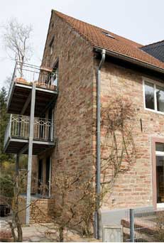 Das Sandsteingebäude ist Teil eines Hofensembles und ca. 1860 erbaut. Die 1. Renovierung fand 1997 statt. Vollständig saniert und neu eingeteilt wurde es 2007/2008. Das 2-geschossiges Haus mit Dachgeschoss besteht aus schönem Bruchsteinmauerwerk. Im Hause sind 3 Wohnungen (Maisonette-Wohnungen).